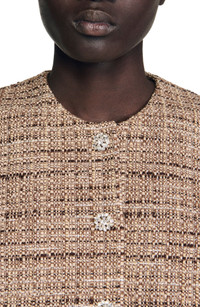 Sleeveless checked tweed crop top with jewel buttons. Sandro Women's tweed crop top Check pattern Round neck Sleeveless Button fastening at the front The model is 5'9 tall and wears a size small