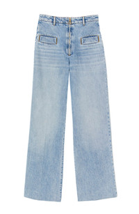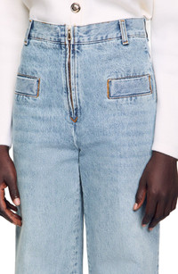 Wide-leg jeans in faded denim with a high waist and belt loops. This denim was treated using a process that reduces water consumption by 95% and significantly limits the use of energy and chemicals compared to traditional treatment techniques. Sandro Women's wide-leg jeans Wide leg High waist Zip fastening at the front Patch pockets on the back The model is 5'8 tall and wears a size 4