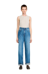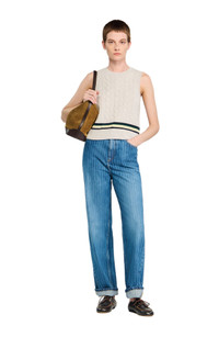 Wide-leg faded denim jeans with vertical stripes, high waist and five pockets. Sandro Women's wide-leg jeans High waist Laser-cut vertical stripes 5 pockets Belt loops The model is 5'9 tall and wears a size 4