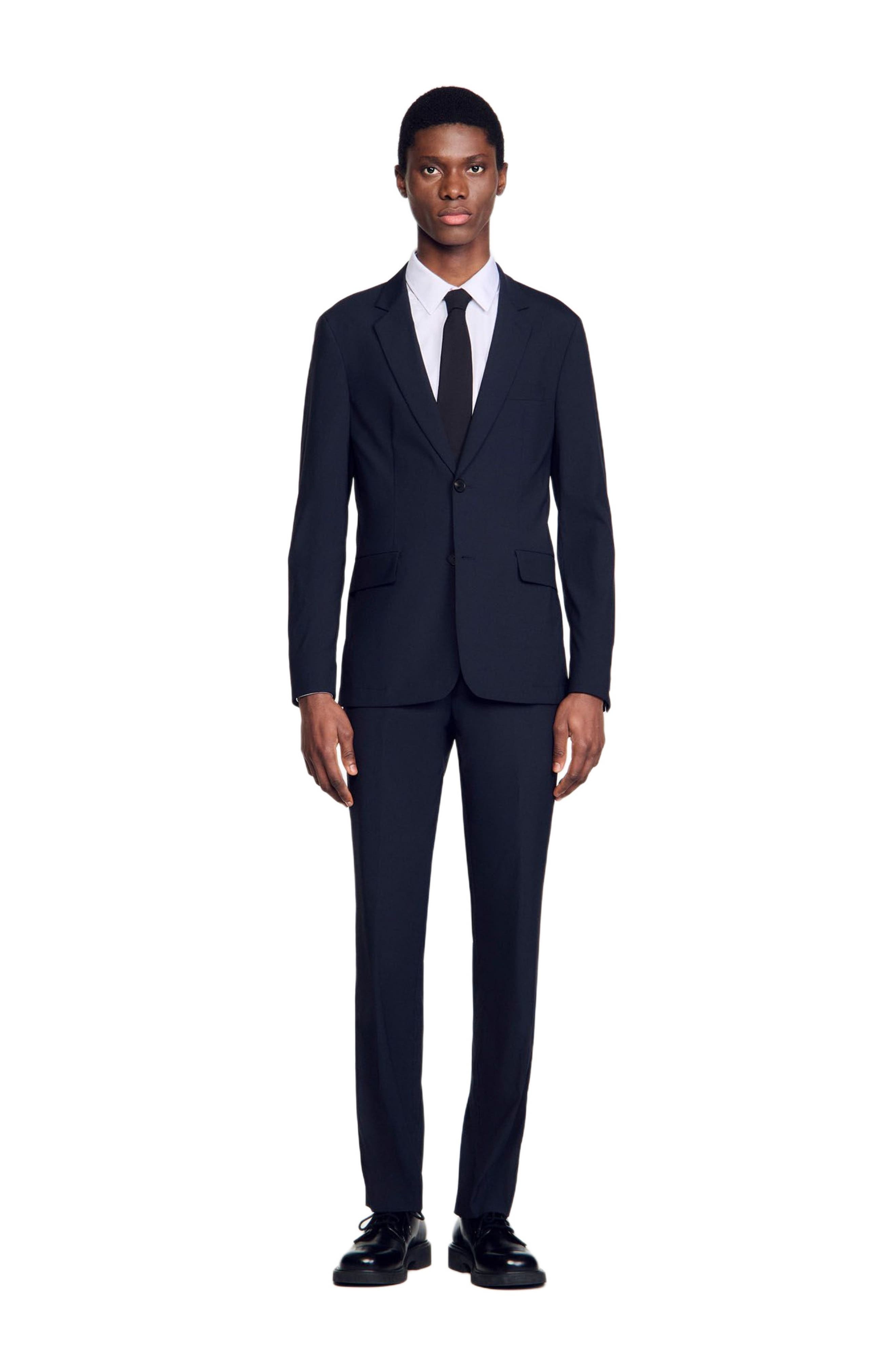 Unstructured wool suit jacket with long sleeves, button fastening and flap pockets. This jacket matches the trousers Sandro Men's wool suit jacket Unstructured cut Long sleeves Lapel collar 2 flap pockets The model is 6'2 tall and wears a size 48