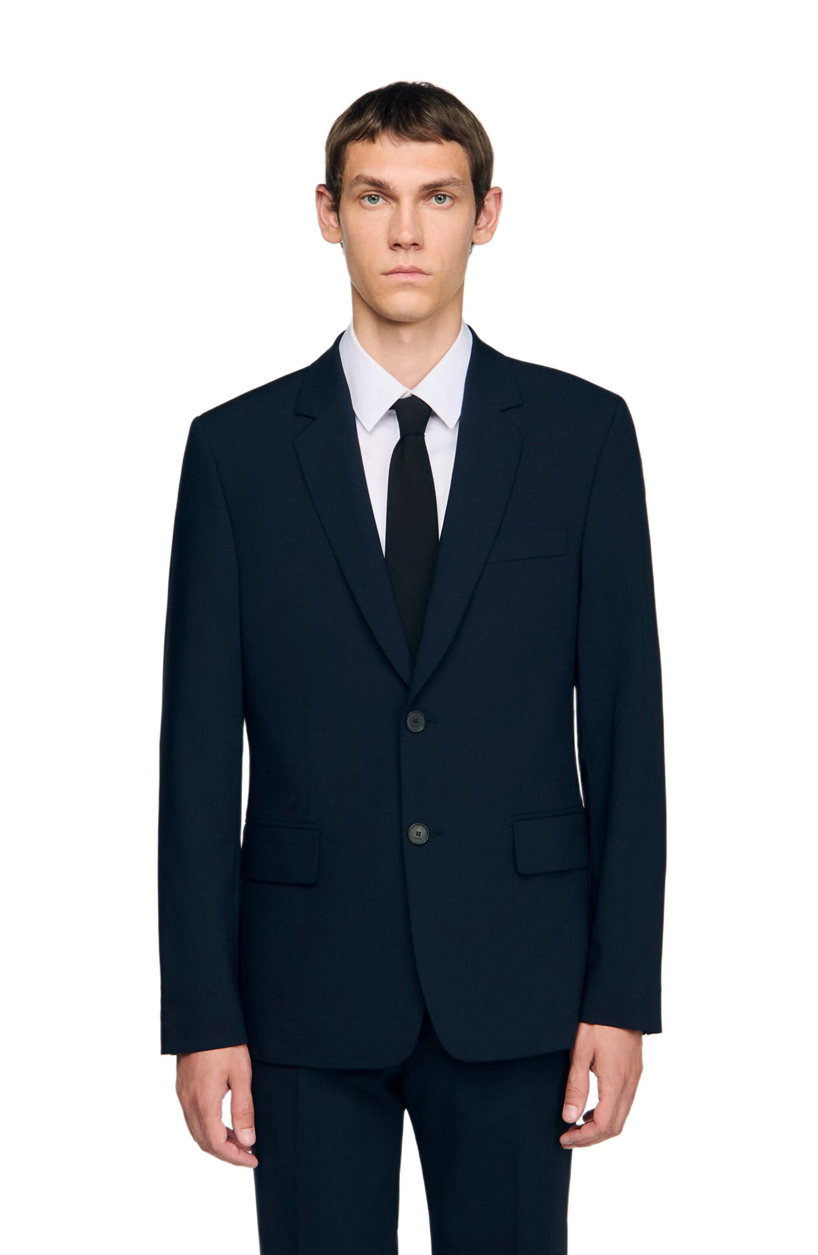Classic wool suit jacket with button fastening and flap pockets. This jacket matches the trousers Sandro Men's wool suit jacket Classic fit 2 flap pockets Long sleeves 2 buttons The model is 6'1 tall and wears a size 48