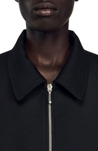 Long-sleeved jacket with shirt collar and zip fastening. Sandro Men's jacket Zip fastening Shirt collar Long sleeves Cuffs with press studs 2 pockets 2 inside pockets Lined The model is 6'2 tall and wears a size M