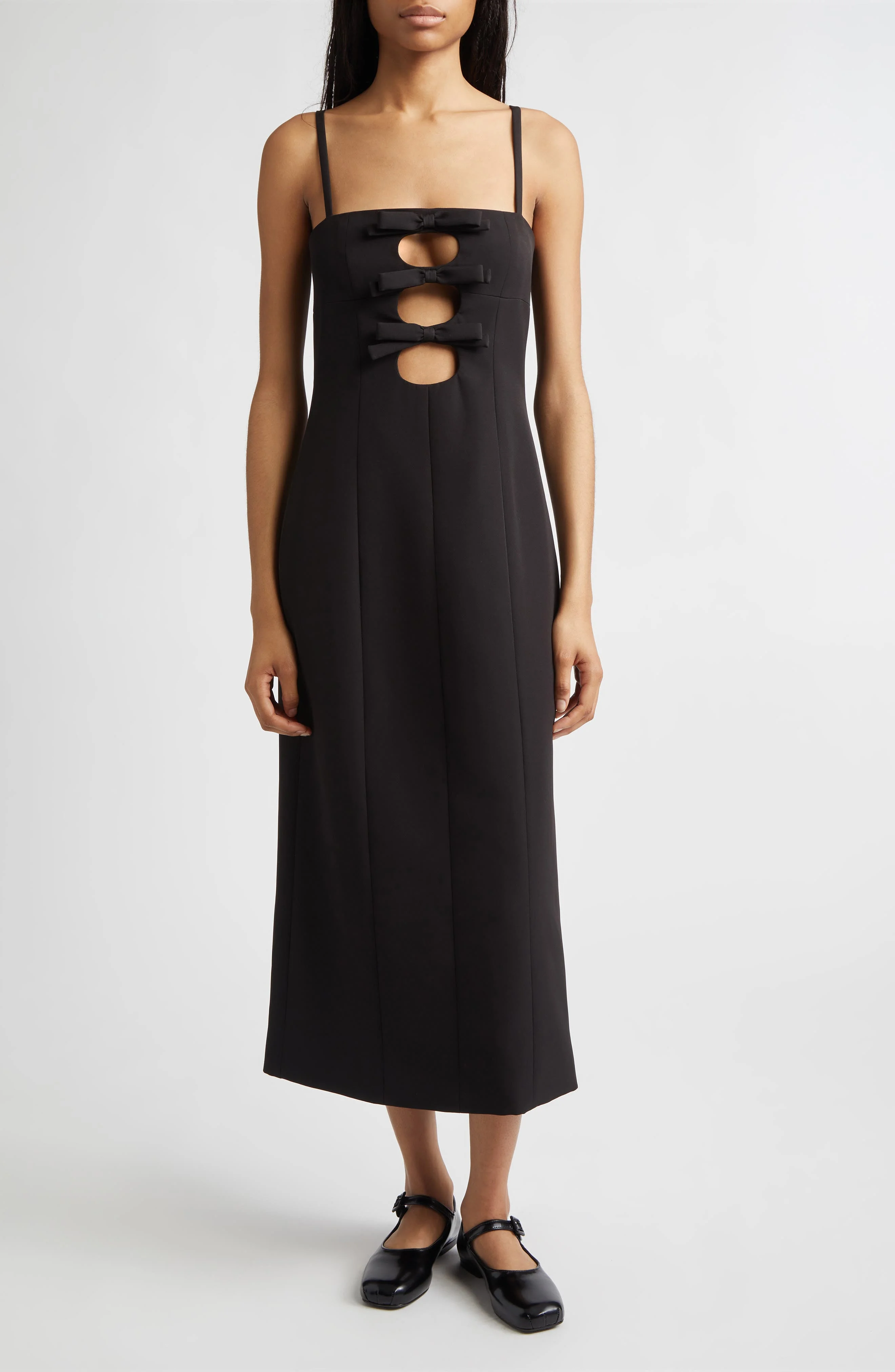 Sandy Liang Sen Bow Cutout Sponge Stretch Suiting Column Dress in Black at Nordstrom