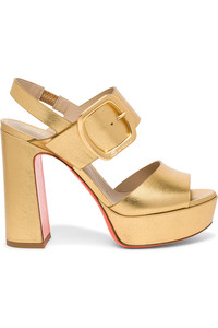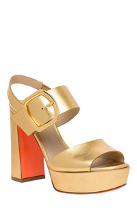 Santoni Women's laminated leather high-heel sandal in Gold at Nordstrom