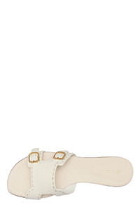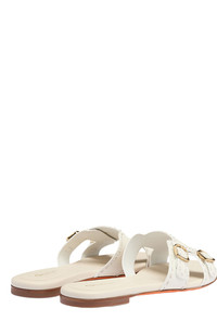 Women's white leather double-buckle Didi slide sandal