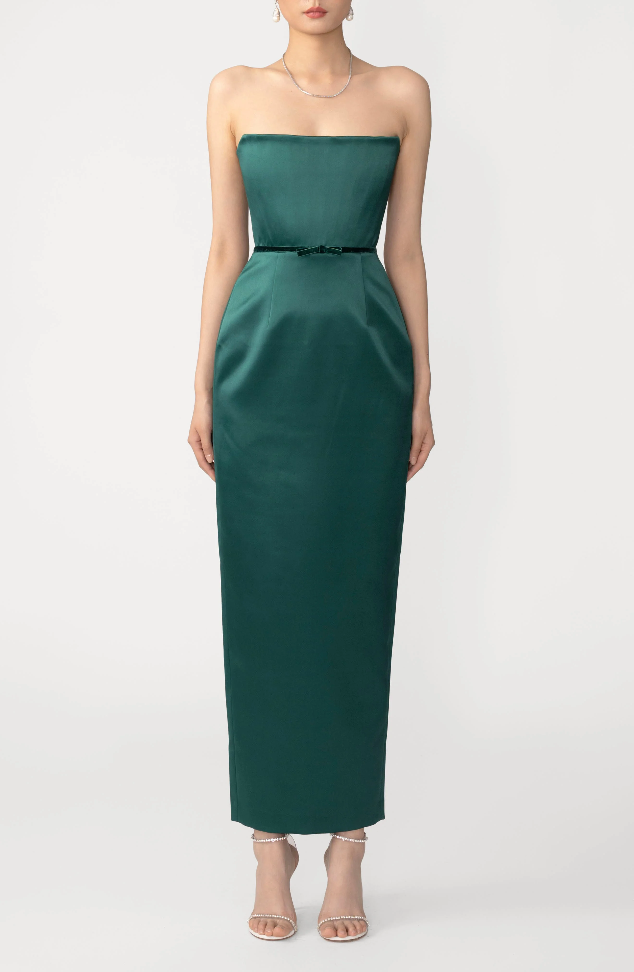 SAU LEE Taylor Satin Gown in Emerald at Nordstrom