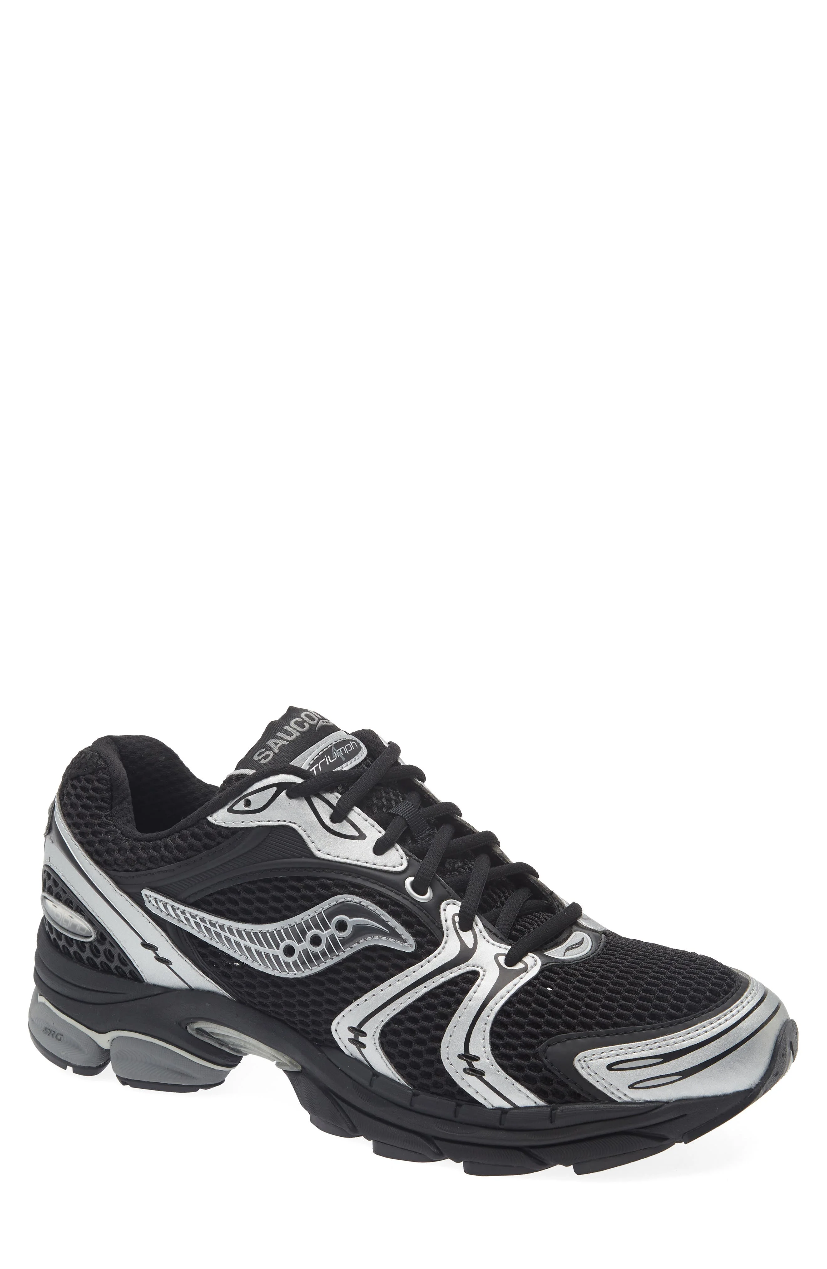 An '00s heritage runner returns to the streets as a high-comfort sneaker still sporting the technical details and performance looks that made it a miler favorite at its debut. Open mesh, mixed textures and metallic pops conceal internal Arch Lock construction that holds your foot in place as you move, while ProGrid cushioning puts lightweight, foot-cradling comfort under every step, stride and jump. Cushioning: absorbs impact and distributes weight for consistent, buoyant comfort under each step Lace-up style Arch Lock technology holds your foot in place for a dynamic, distraction-free fit Removable, cushioned insole with arch support ProGrid lightweight cushioning compresses dynamically with every step to cup your foot in superior comfort XT-600 carbon rubber tread puts durable, abrasion-resistant traction under every stride Leather and textile upper/textile lining/rubber sole Imported
