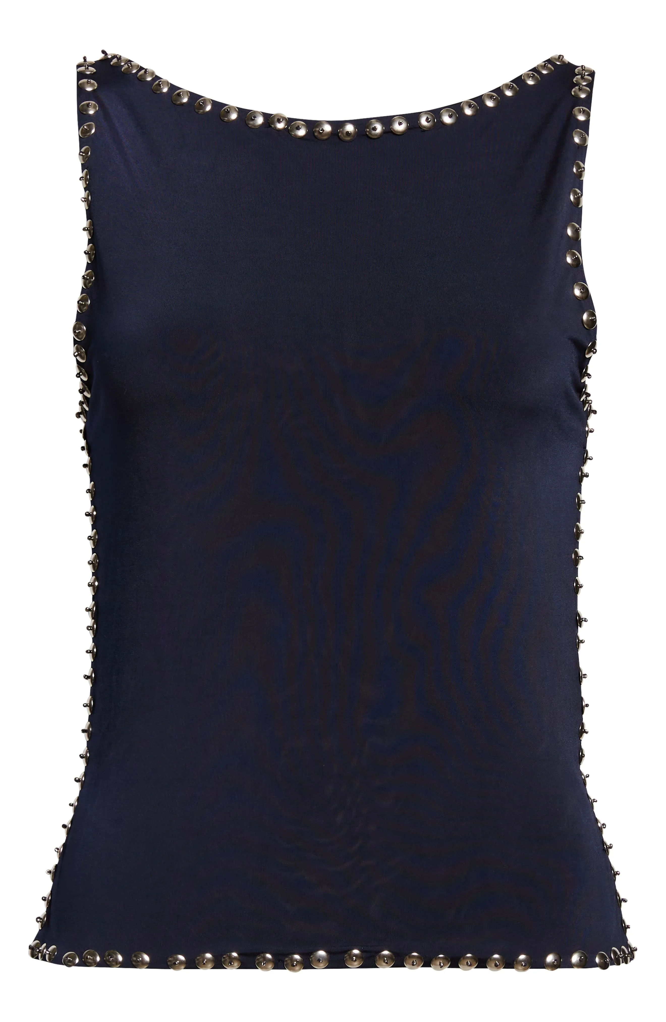 Shiny studs trace the silhouette of a scoop-neck tank that's given an alluring finish with a strap-bridged open back. Back button-and-loop closure Scoop neck Sleeveless 96% polyester, 4% elastane Dry clean Made in Turkey Designer Clothing
