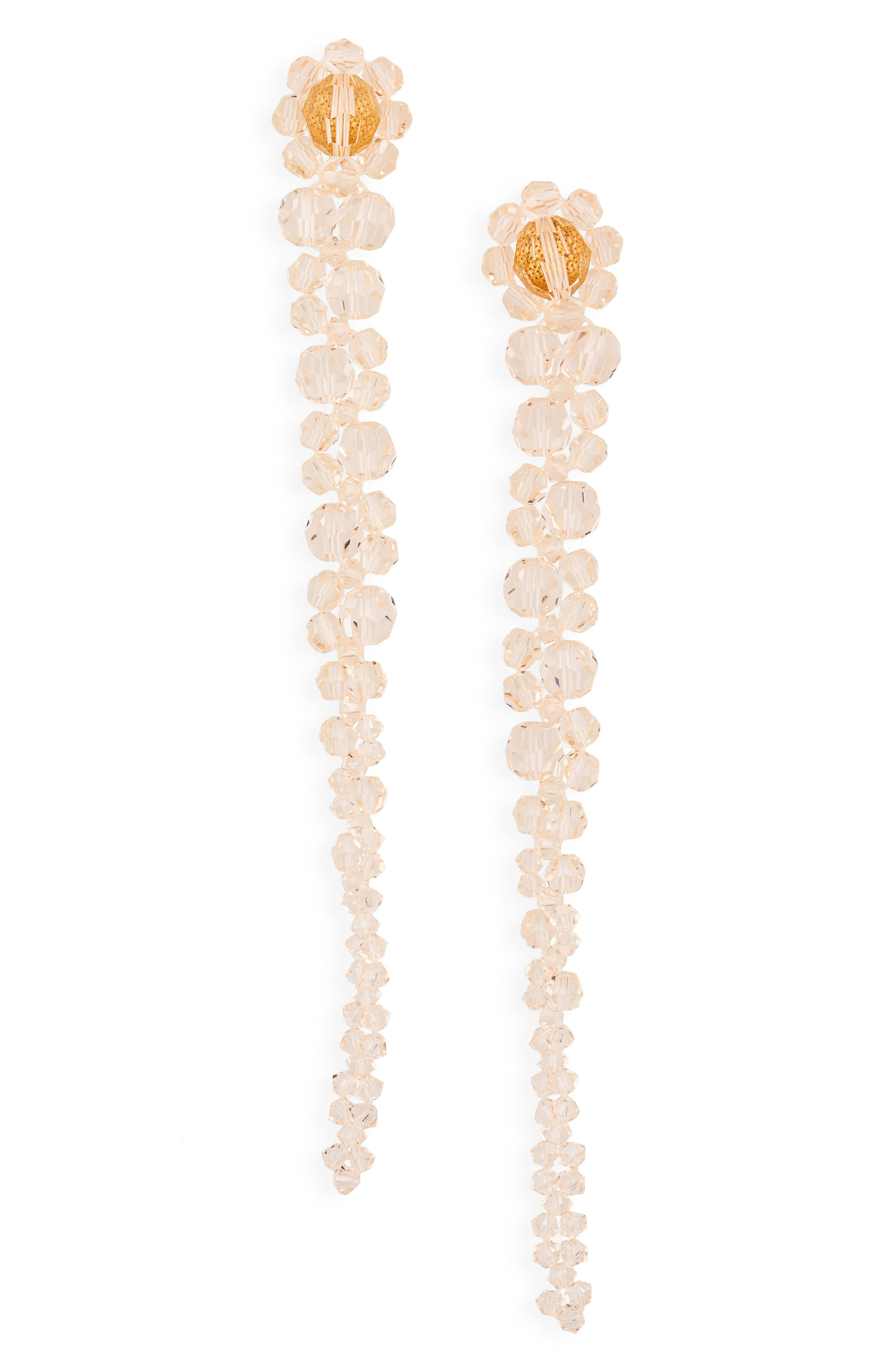 An icy dagger of intertwined glass beads drips from these drop earrings that add a kinetic shimmer to every move you make. 4 1/2" drop; 1/2" width Post back Glass/sterling silver/goldtone plate Made in Portugal Asian Owned/Founded