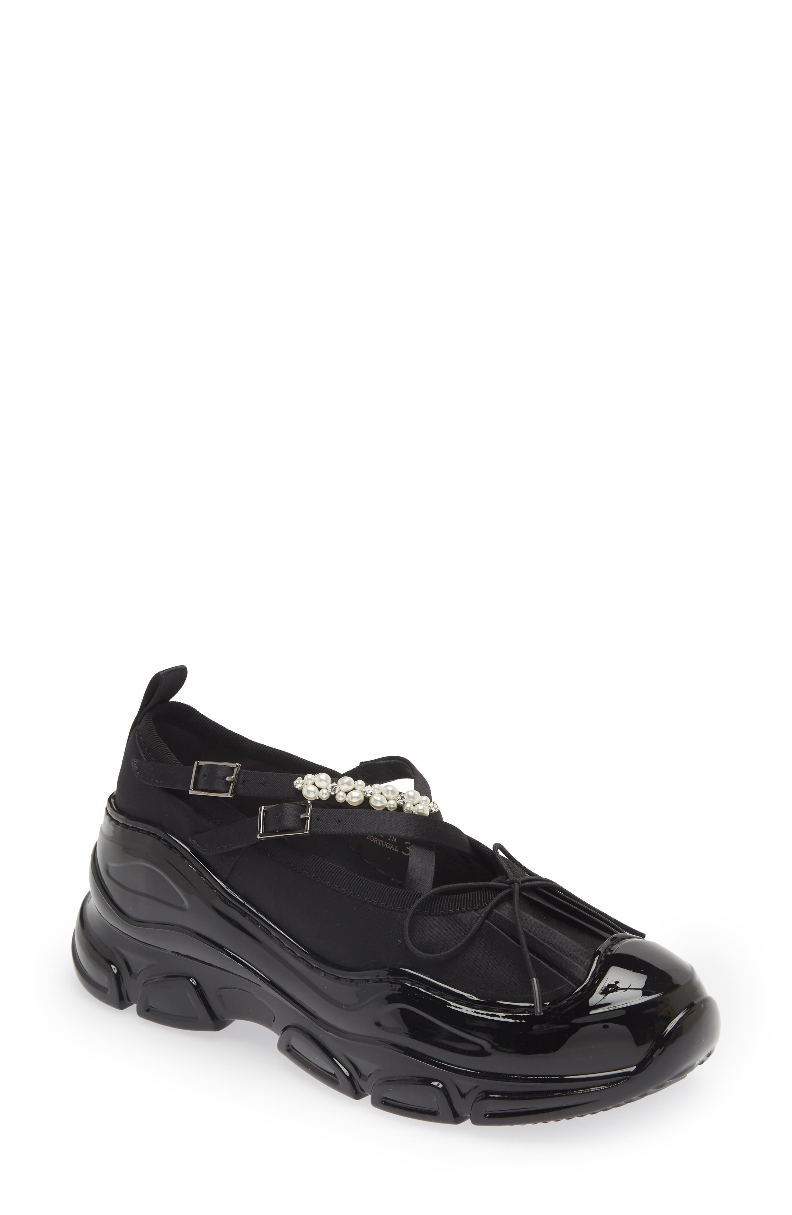Simone Rocha Classic Crisscross Strap Tracker Sneaker in Black/clear/pearl at Nordstrom