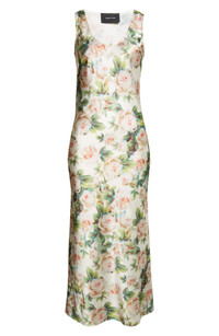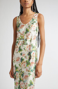 Rocha doubles down on coquettish romance with this rose-dappled dress that mimics lingerie styles as it gracefully skims your shape in lustrous stretch satin. Dreamy design details feature throughout the Irish designer's fall '25 retrospective collection, which highlights greatest hits from her eponymous label's 15-year tenure. Slips on over head Scoop neck Sleeveless 97% polyester, 3% elastane Dry clean Made in Portugal Designer Clothing Asian & Pacific Islander Owned/Founded