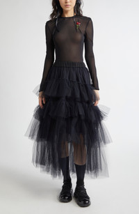 Simone Rocha Tiered Tulle Tutu Midi Skirt in Black at Nordstrom