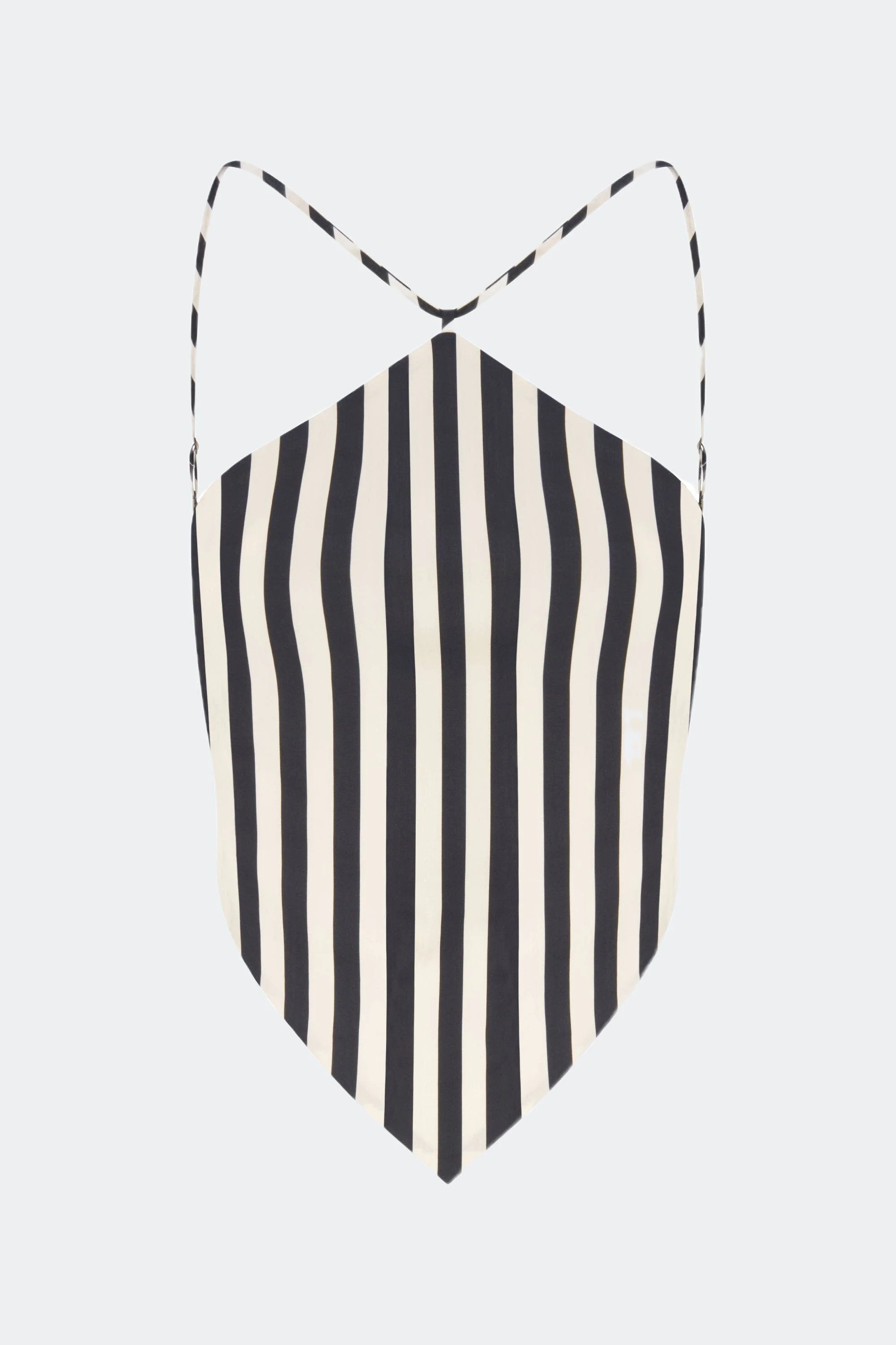 Halter top with tie detail in back. Adjustable straps for a customizable fit.Pairs with the pia poplin pant MACHINE WASH COLD, DO NOT BLEACH, TUMBLE DRY NORMAL, IRON LOW HEAT . Sizing Mireya is 5'10" and wears a size S Bust: 33" Waist: 25" Hips: 36"