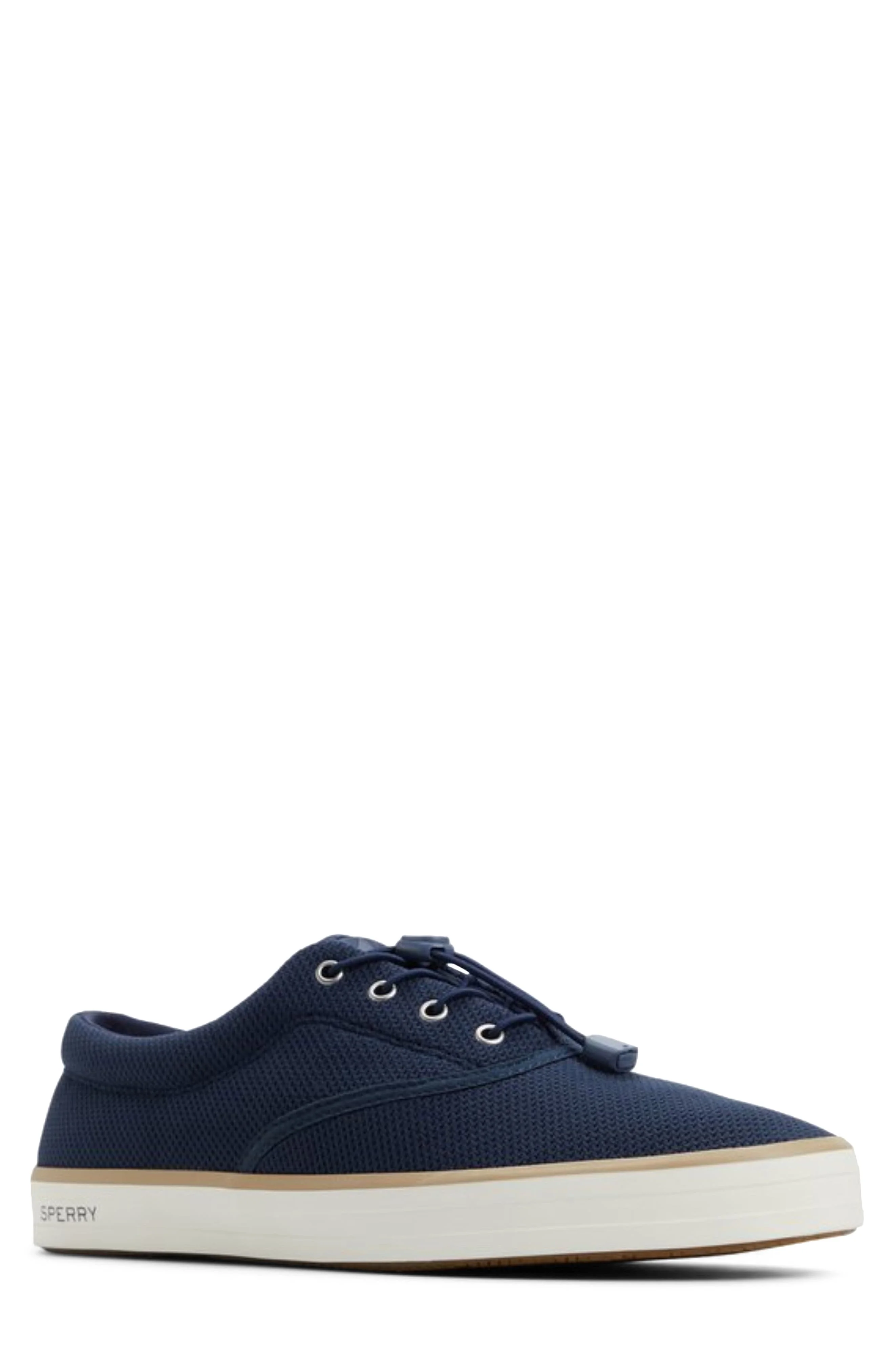 Toggle-cinched laces bring easy-on and easy-off wear to this nautical-inspired low-top sneaker featuring a breathable mesh upper set in a cupsole with razor-cut Wape-Siping for grippy traction. Drawstring-toggle laces Cushioned footbed Recycled-polyester textile upper and lining/rubber sole Imported