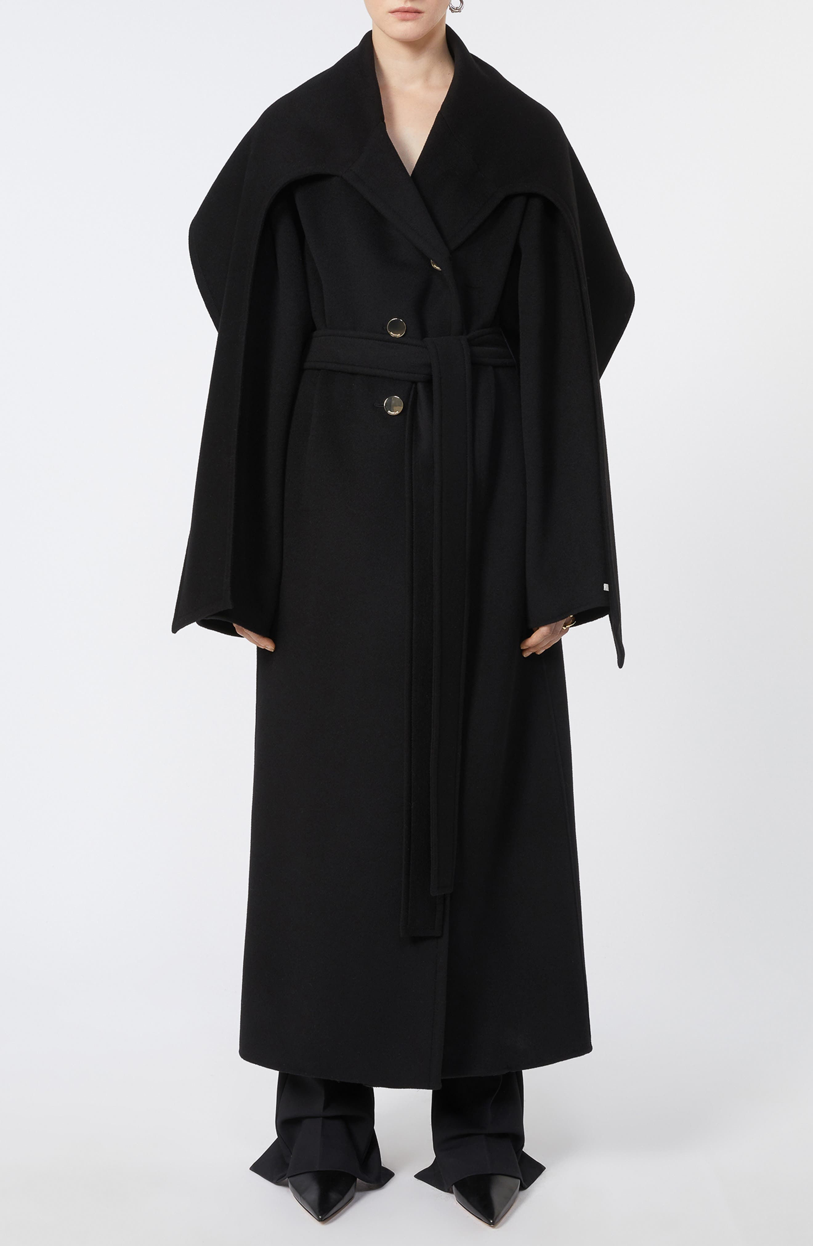 SPORTMAX Baldo Scarf Detail Virgin Wool Belted Coat in Black at Nordstrom