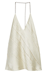 Pressed-in creases bias stripe this flowy satin halter top self-accessorized with an adjustable halter chain that ends in an S-logo charm. Spring-ring closure at neck Halter neck Sleeveless 100% polyester Dry clean Made in Portugal Designer Clothing