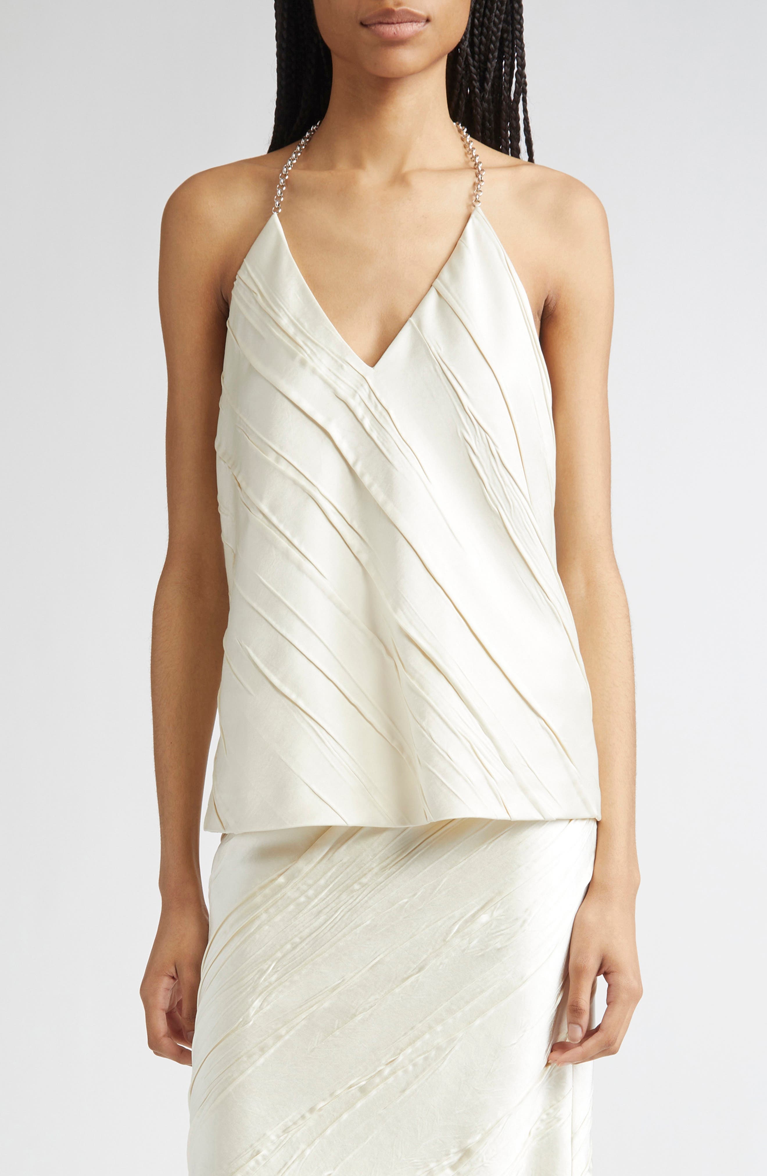 SPORTMAX Fatuo Chain Halter Creased Satin Top in Ivory at Nordstrom
