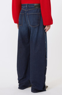 For their fall '25 collection, the Italian label pays homage to its legacy of avant-garde design with looks such as these wide-leg jeans featuring snap-secured split outseams. Zip fly with button closure Five-pocket style Side slits with snap closure 100% cotton Dry clean Imported Designer Clothing