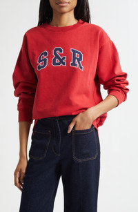 Sporty & Rich Ivy Logo Appliqué Cotton Graphic Sweatshirt in Ruby at Nordstrom