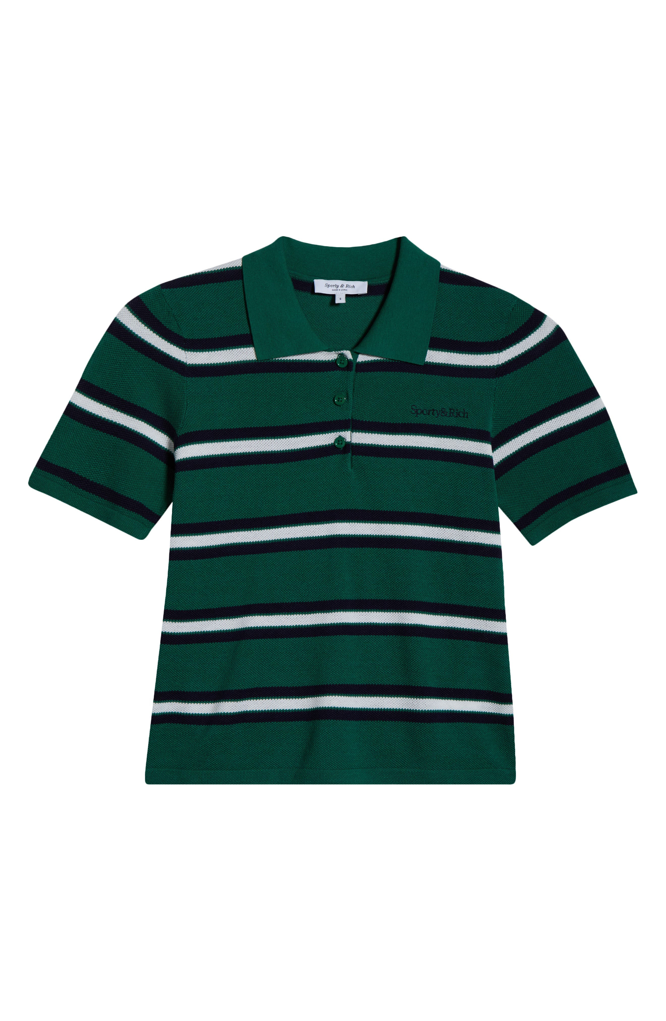Sporty & Rich Serif Logo Cotton & Silk Pique Polo in Alpine/White/Dark Navy at Nordstrom