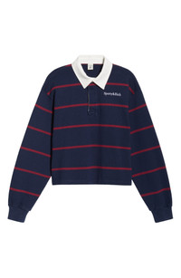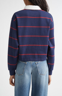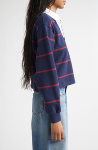 Sporty & Rich Serif Logo Embroidered Cotton Long Sleeve Rugby Polo in Dark Navy/white/merlot at Nord