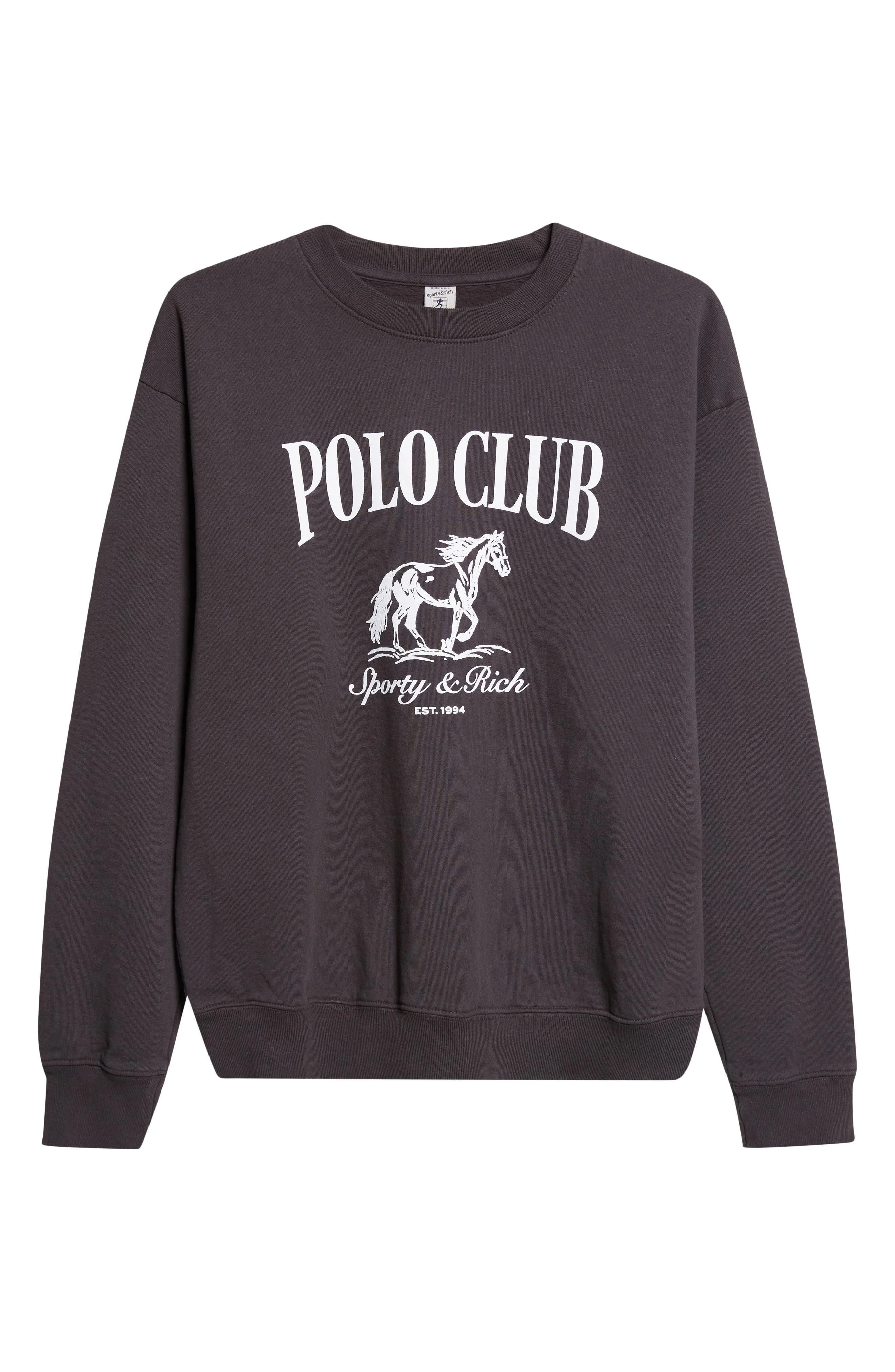 Sporty & Rich Stallion Crewneck Cotton Graphic Sweatshirt in Faded Black at Nordstrom