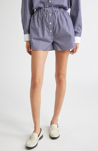 Sporty & Rich Vendome Stripe Cotton Boxer Shorts in Blue Striped at Nordstrom