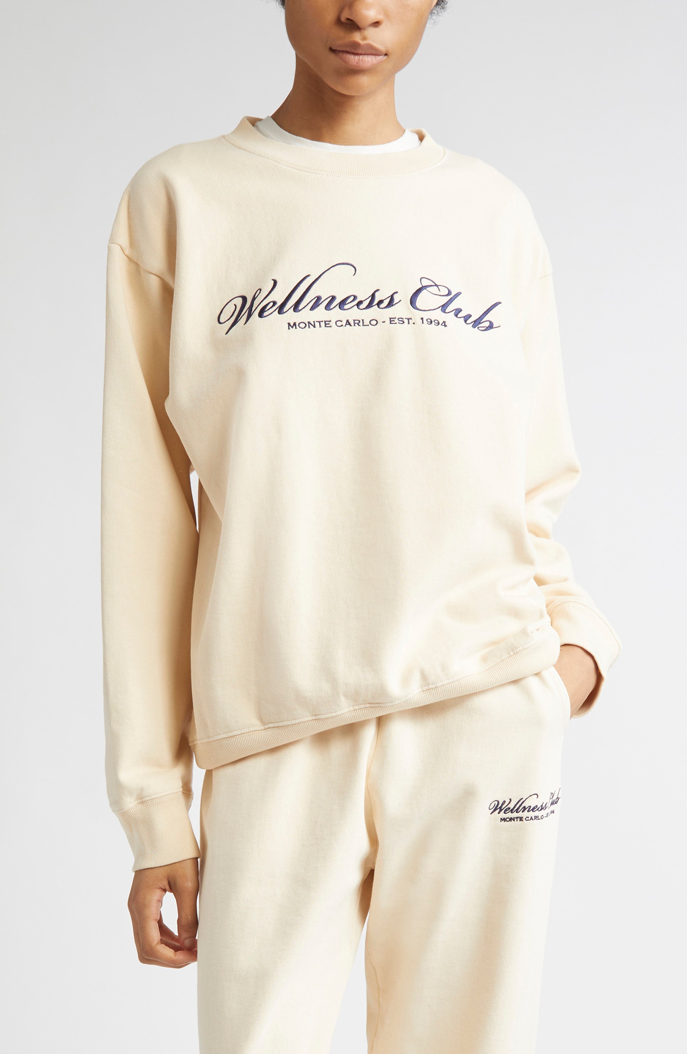Sporty & Rich Wellness Club Embroidered Fleece Sweatshirt in Cream at Nordstrom