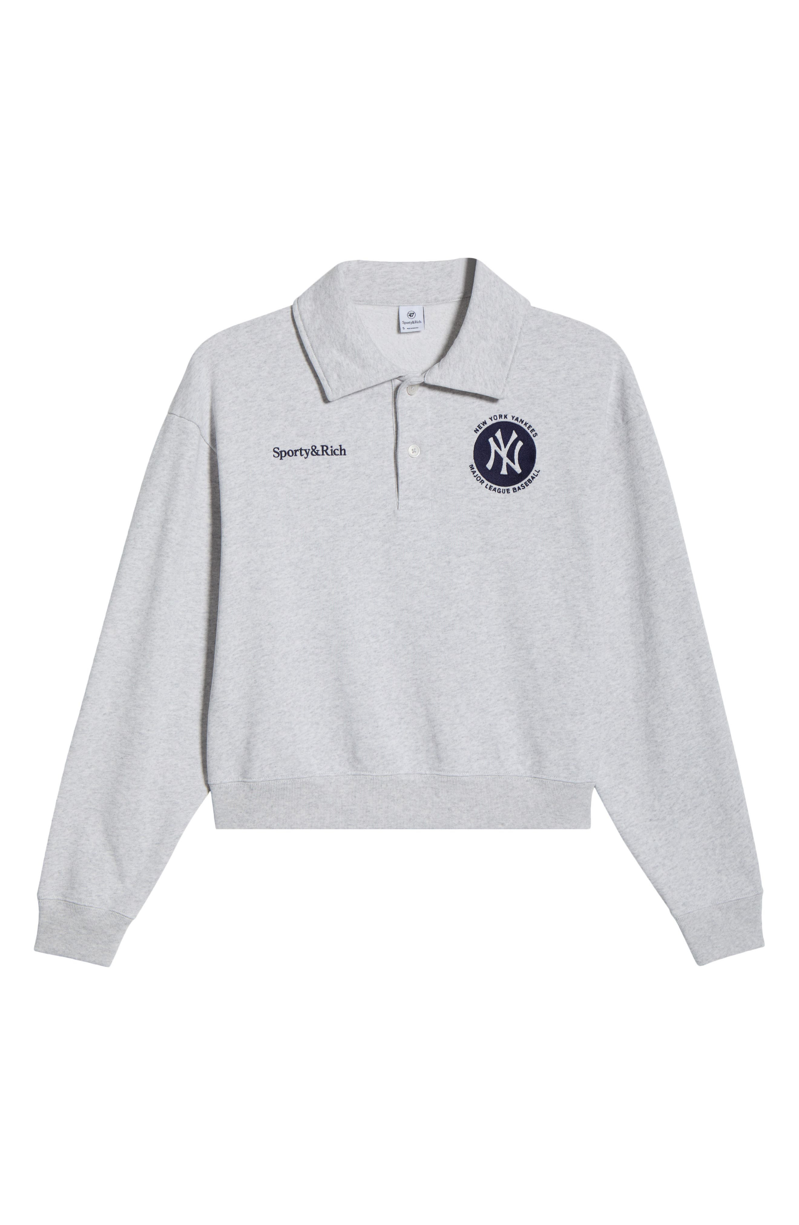 Sporty & Rich x '47 MLB New York Yankees World Series Cotton Fleece Polo Sweatshirt in Heather Gray