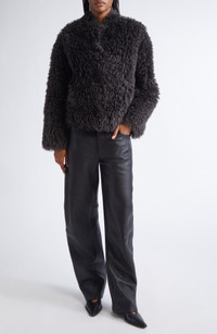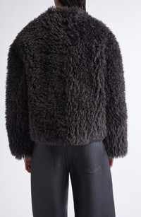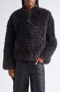 The clean-lined Scandinavian design aesthetic is at its perfectly plush apex with this faux-shearling jacket from Nellie Kamras's fall '25 collection. Front hook-and-eye closure Shawl collar On-seam pockets Lined 100% polyester faux shearling Dry clean Imported Designer Clothing