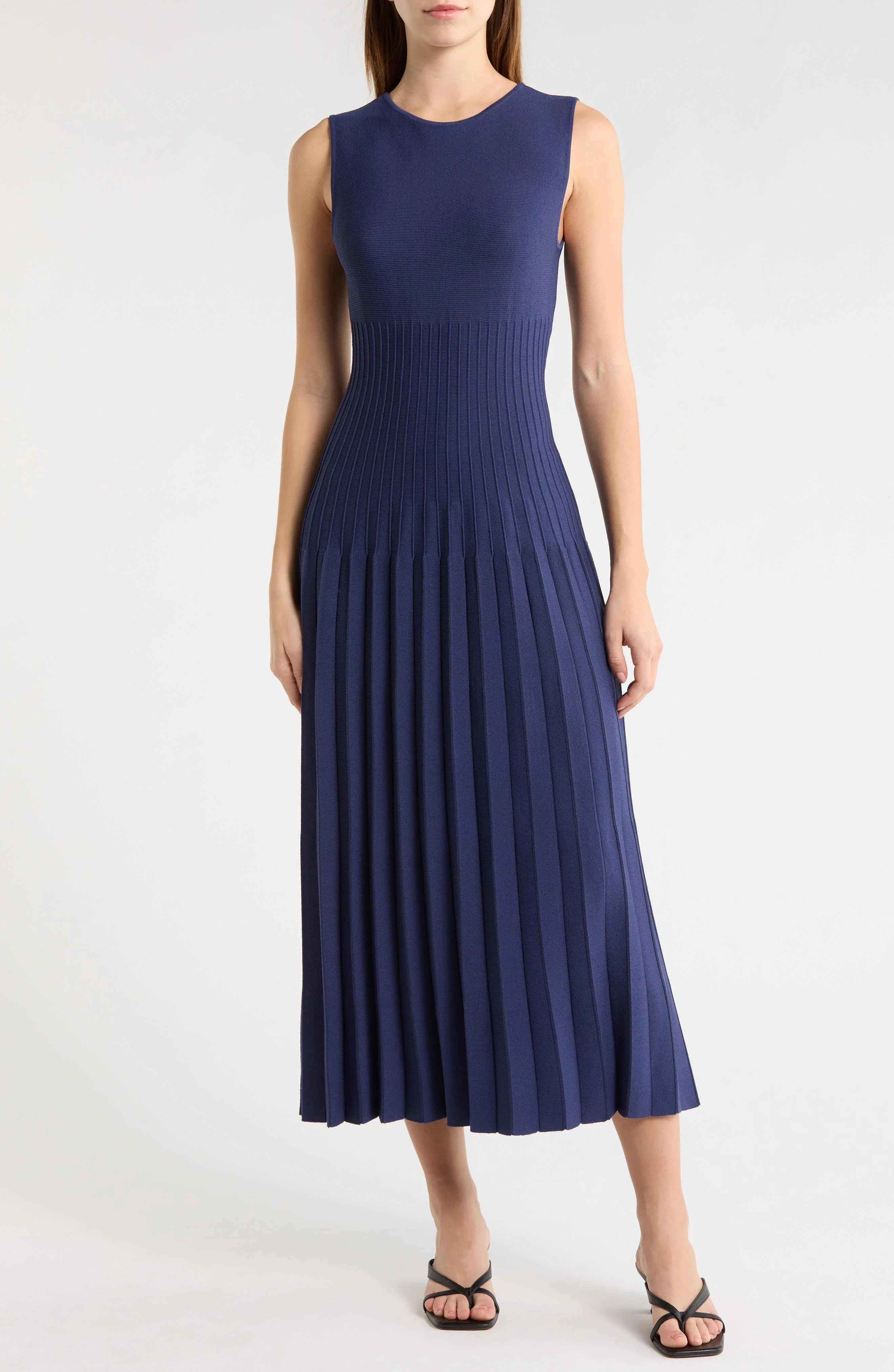 STAUD Elyse Pleated Sleeveless Knit Maxi Dress in Navy at Nordstrom