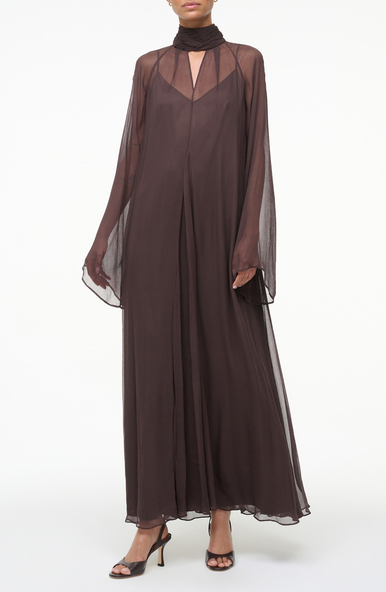 STAUD Esther Long Sleeve Chiffon Maxi Dress in Earth at Nordstrom