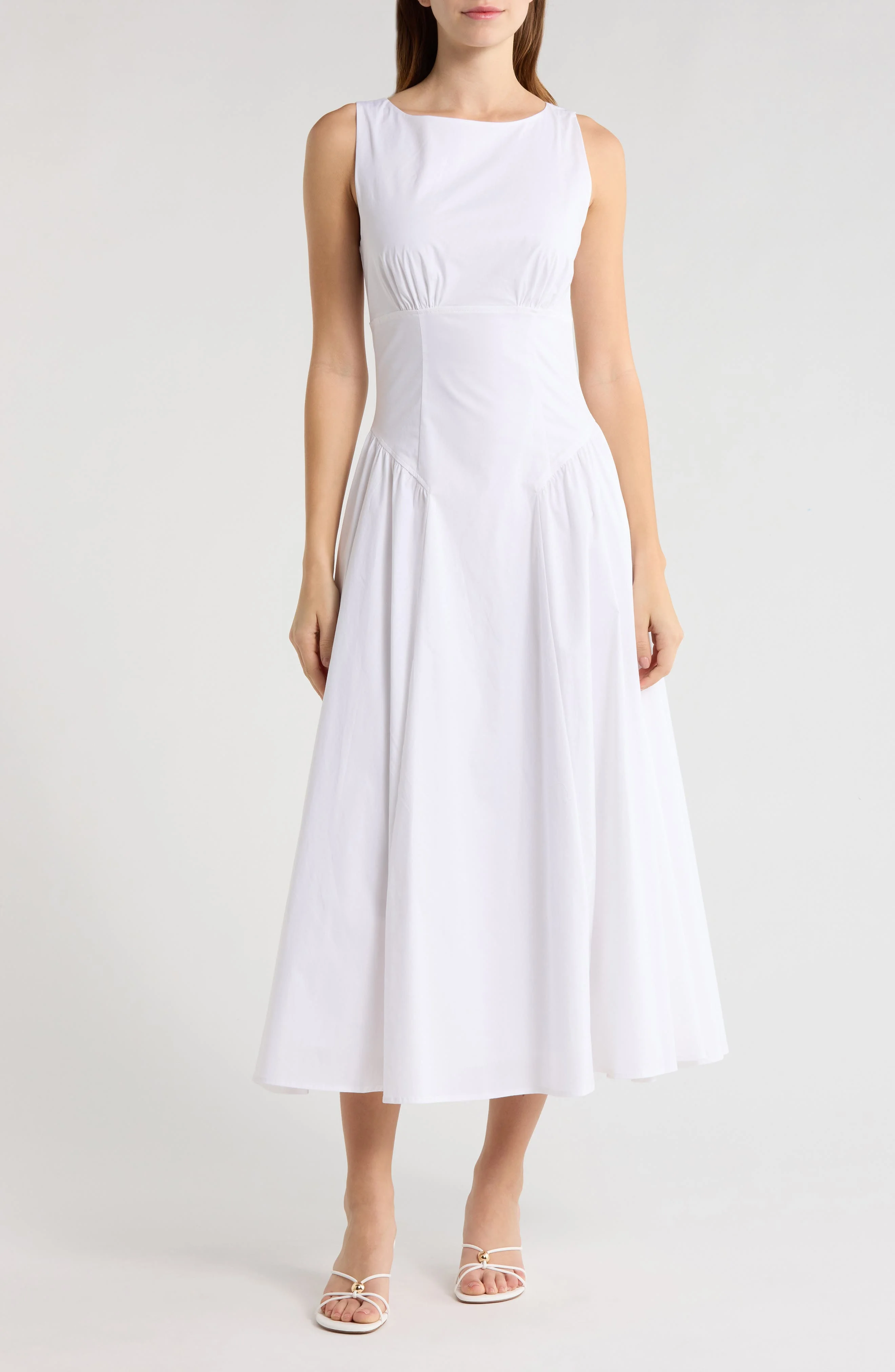 STAUD Gwen Shaped Waist Stretch Cotton Dress in White at Nordstrom
