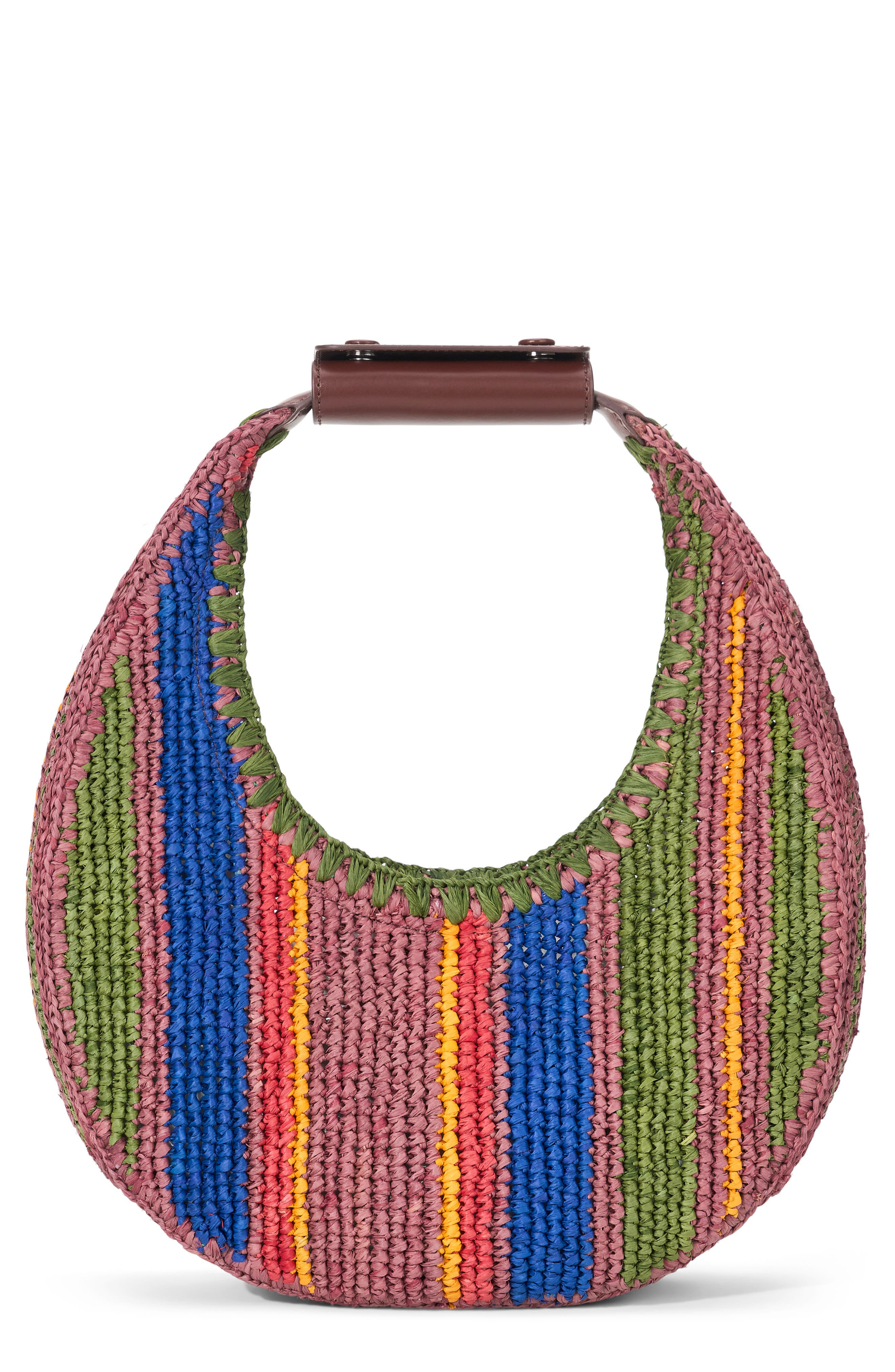 STAUD's iconic It bag is updated for the season in colorfully striped, crocheted raffia while retaining its '70s-inspired circular shape that resembles a crescent moon. Magnetic-tab closure Top carry handle Unlined Raffia with leather trim Imported