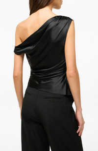 This endlessly elegant one-shoulder top is crafted from luxe stretch silk with soft ruching. 20" to 22 1/2" length (size 8) One-shoulder neck 93% silk, 7% elastane Dry clean Imported