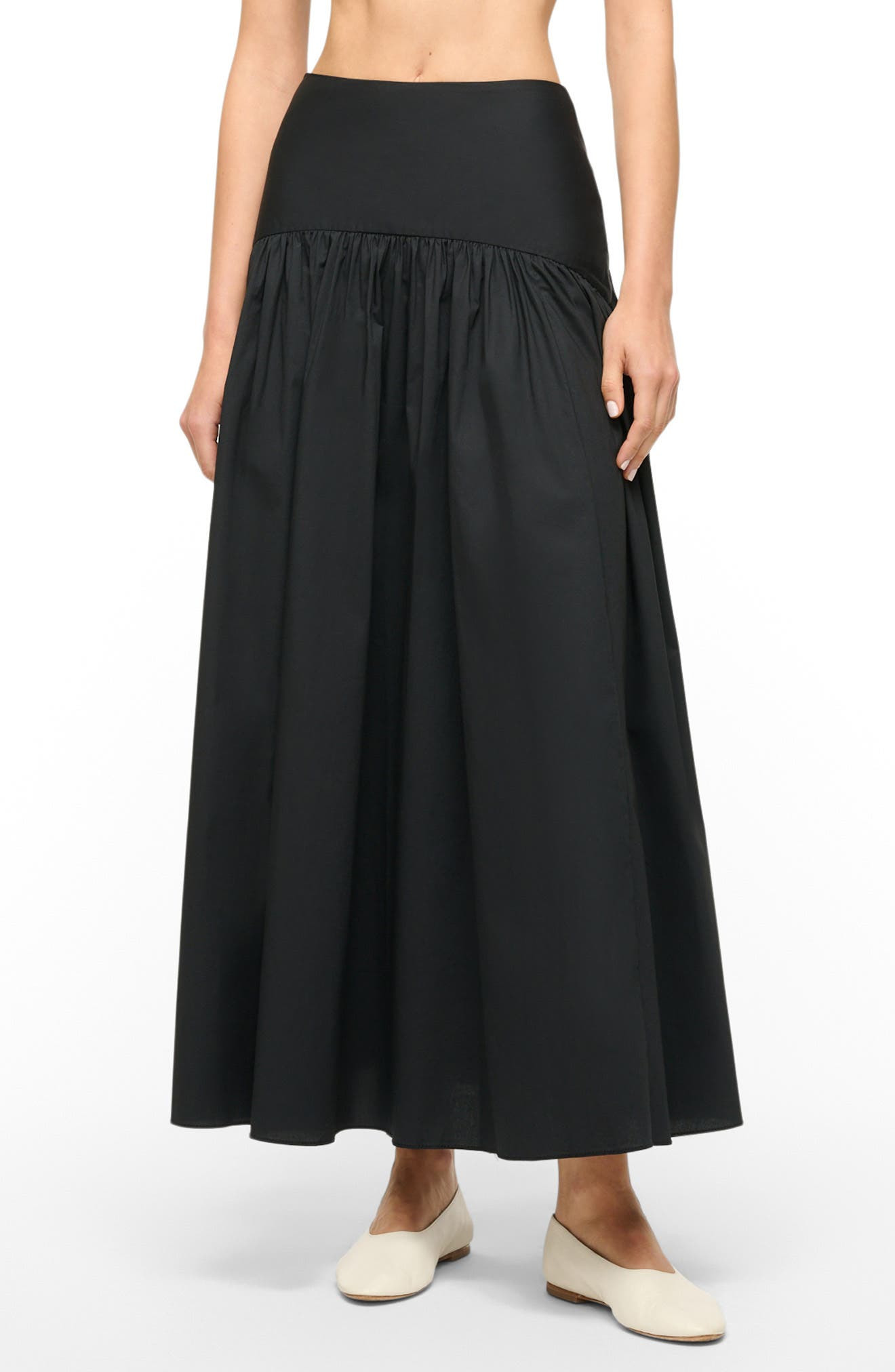 STAUD Procida Asymmetric Gathered Stretch Cotton A-Line Skirt in Black at Nordstrom