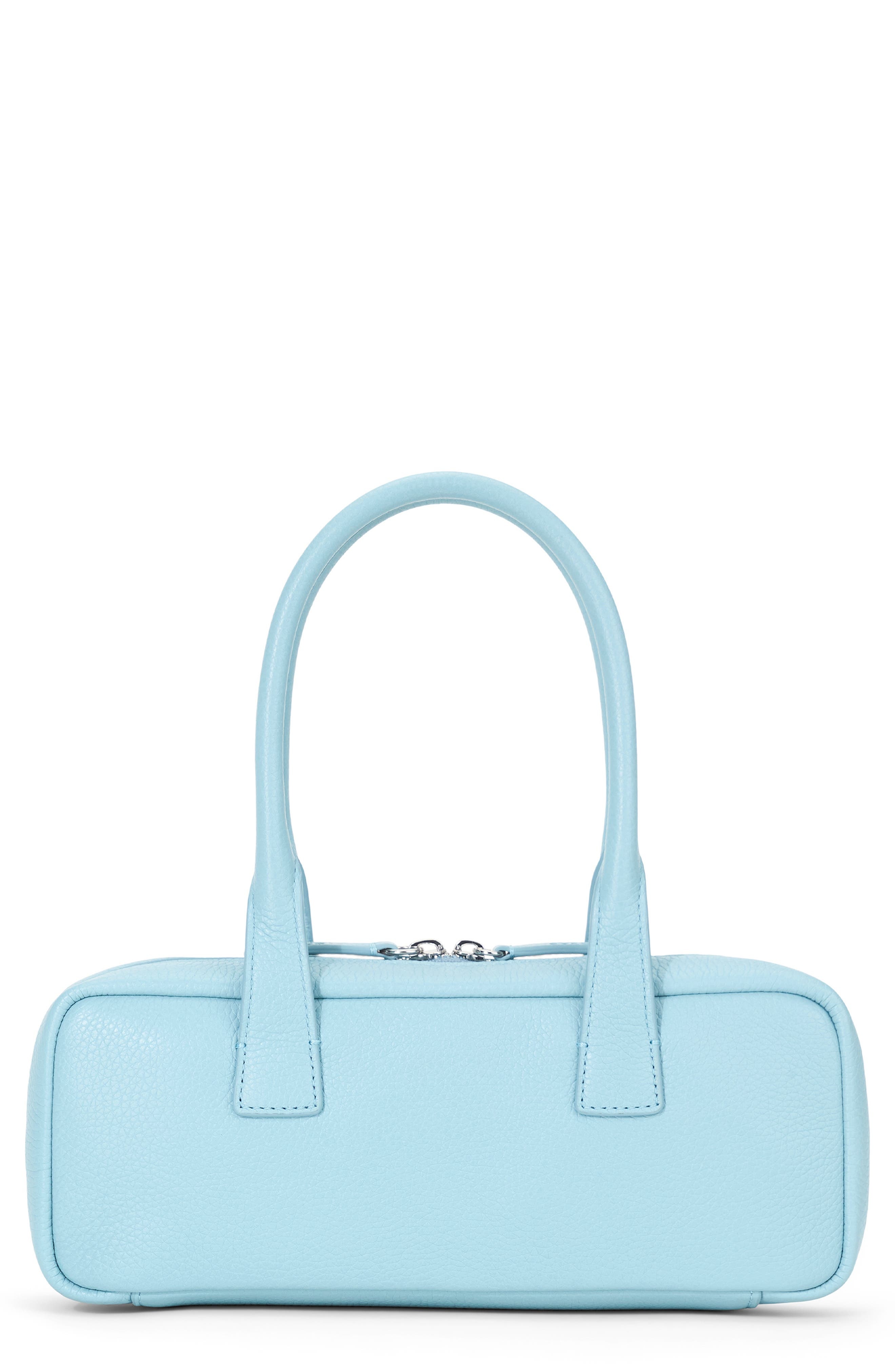 A slim profile and richly textured leather distinguish a retro-cool shoulder bag that will complement your trendsetting looks. Two-way top-zip closure Top carry handles Interior zip pocket Structured silhouette with flat base for stability Lined Leather Imported