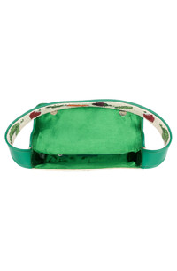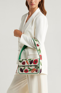 Beaded with a playful motif and edged with faux-leather piping, this shoulder bag brings a cheery, retro vibe to your look. Magnetic-snap flap closure Shoulder strap Exterior magnetic-snap slip pocket Interior zip pocket Lined Glass/textile/faux leather Imported