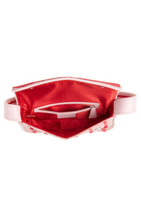 Beaded with a playful motif and edged with faux-leather piping, this shoulder bag brings a cheery, retro vibe to your look. Magnetic-snap flap closure Shoulder strap Exterior magnetic-snap slip pocket Interior zip pocket Lined Glass/textile/faux leather Imported
