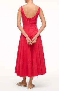 STAUD Wells Sleeveless Stretch Silk Midi Dress in Cherry at Nordstrom