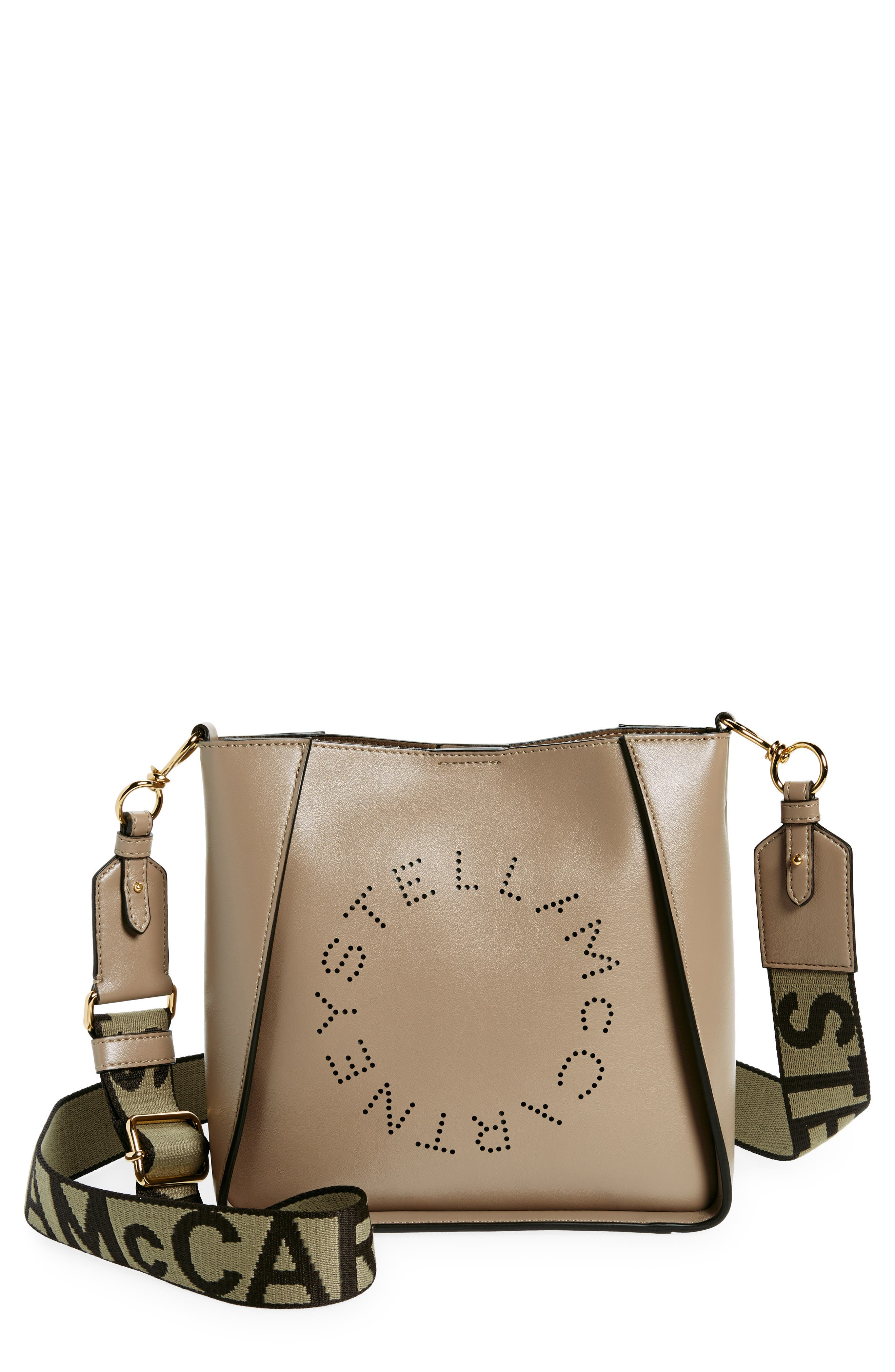 A perforated logo design and logo-embellished strap brand a compact crossbody made from the brand's high-quality Alter Nappa faux leather. Magnetic-snap closure Adjustable crossbody strap Interior features wall pockets Synthetic Made in Italy Designer Handbags