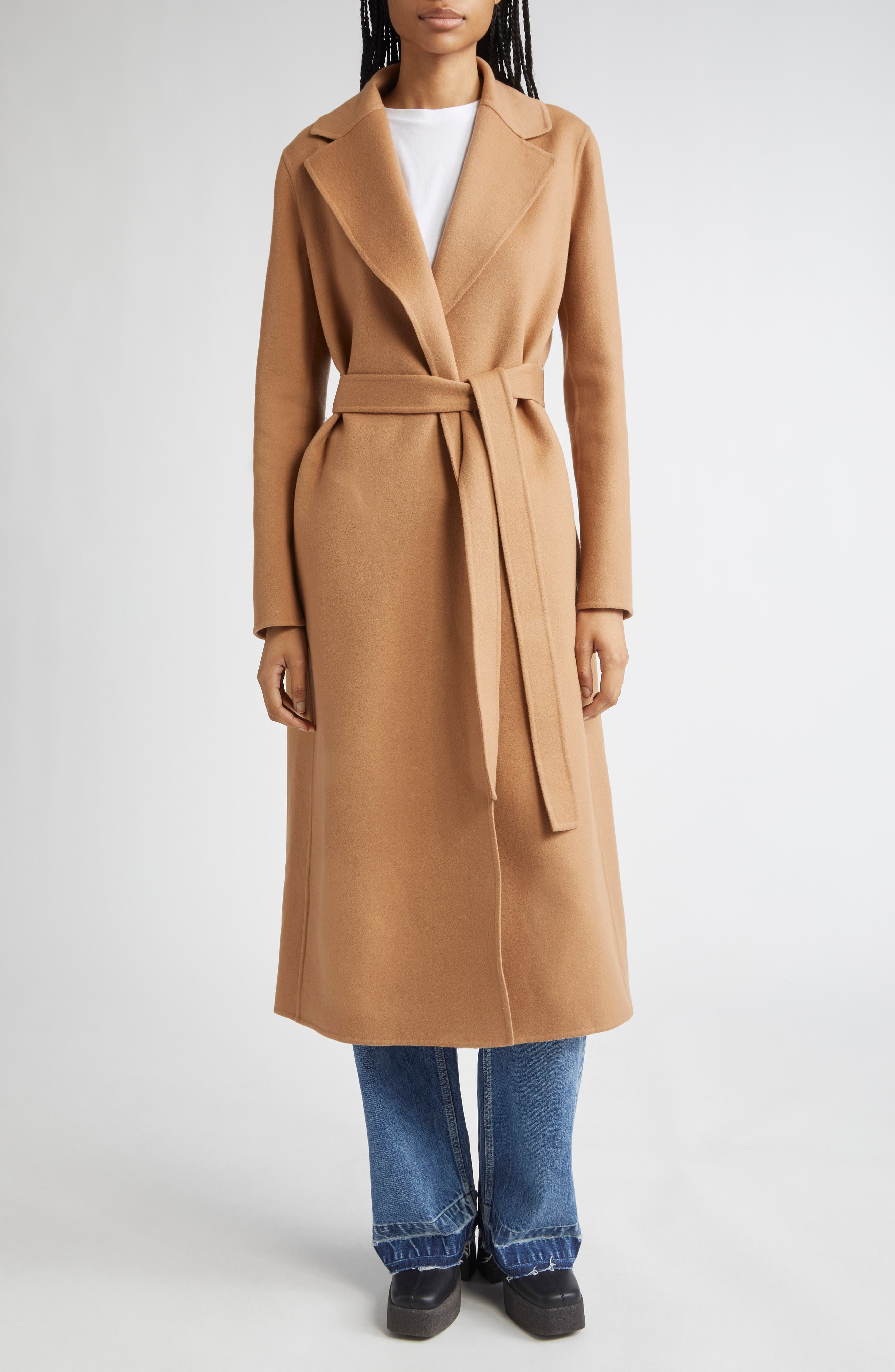 Stella McCartney reimagines timeless tailoring with her signature finesse in this double-face wool coat. With its clean-lined construction, classic notched lapels and cinched waist courtesy of the matching tie belt, this piece is an ode to modern minimalism with a luxurious edge. Open front Notched lapels Split cuffs Side-seam pockets Removable tie belt Unlined 100% wool Dry clean Made in Italy Designer Clothing