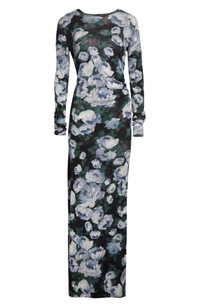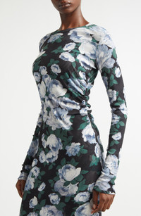 Handcrafted from stretchy mesh and swathed in a floral pattern imagined and hand-painted in London, this piece brings gallery energy to a sleek everyday silhouette without sacrificing comfort. Asymmetric gathering skims the side and releases a soft cascade that elongates the silhouette. Hidden side-zip closure Crewneck Long sleeves Lined 100% polyamide Dry clean Made in Italy Designer Clothing