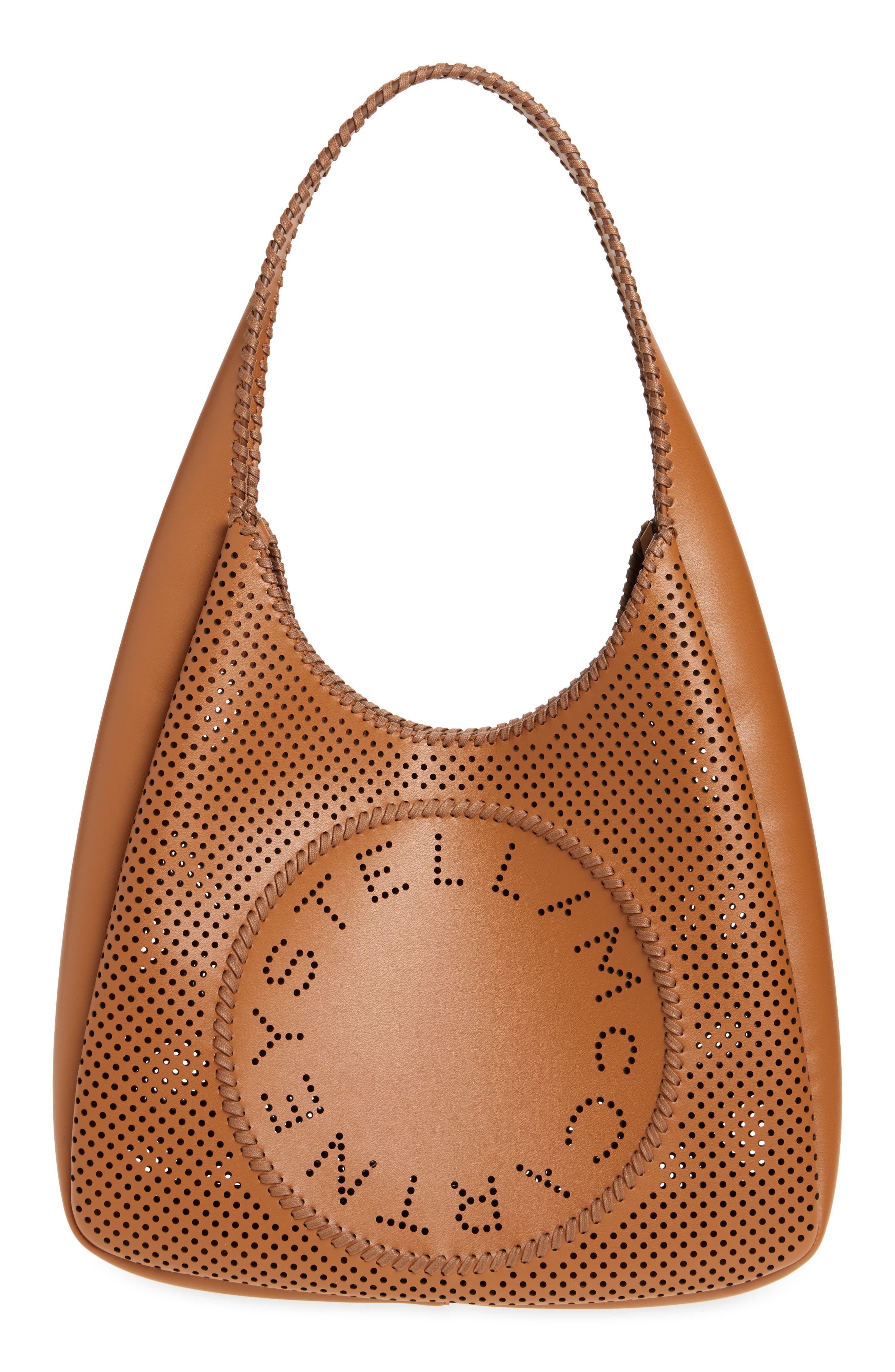 Stella McCartney Circle Logo Perforated Faux Leather Hobo Bag in Cuoio at Nordstrom