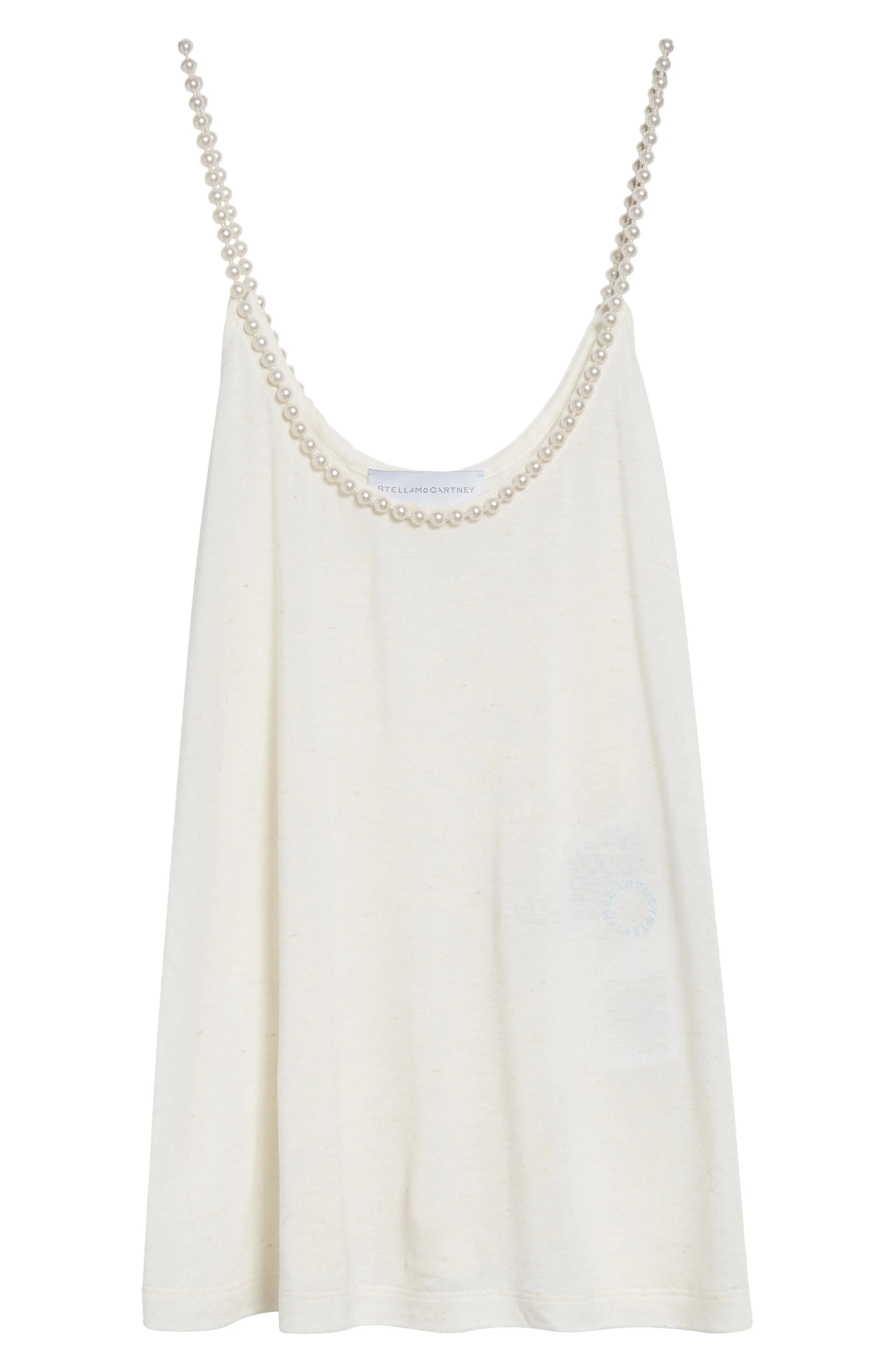 Stella McCartney Faux Pearl Embellished Camisole in Cream at Nordstrom