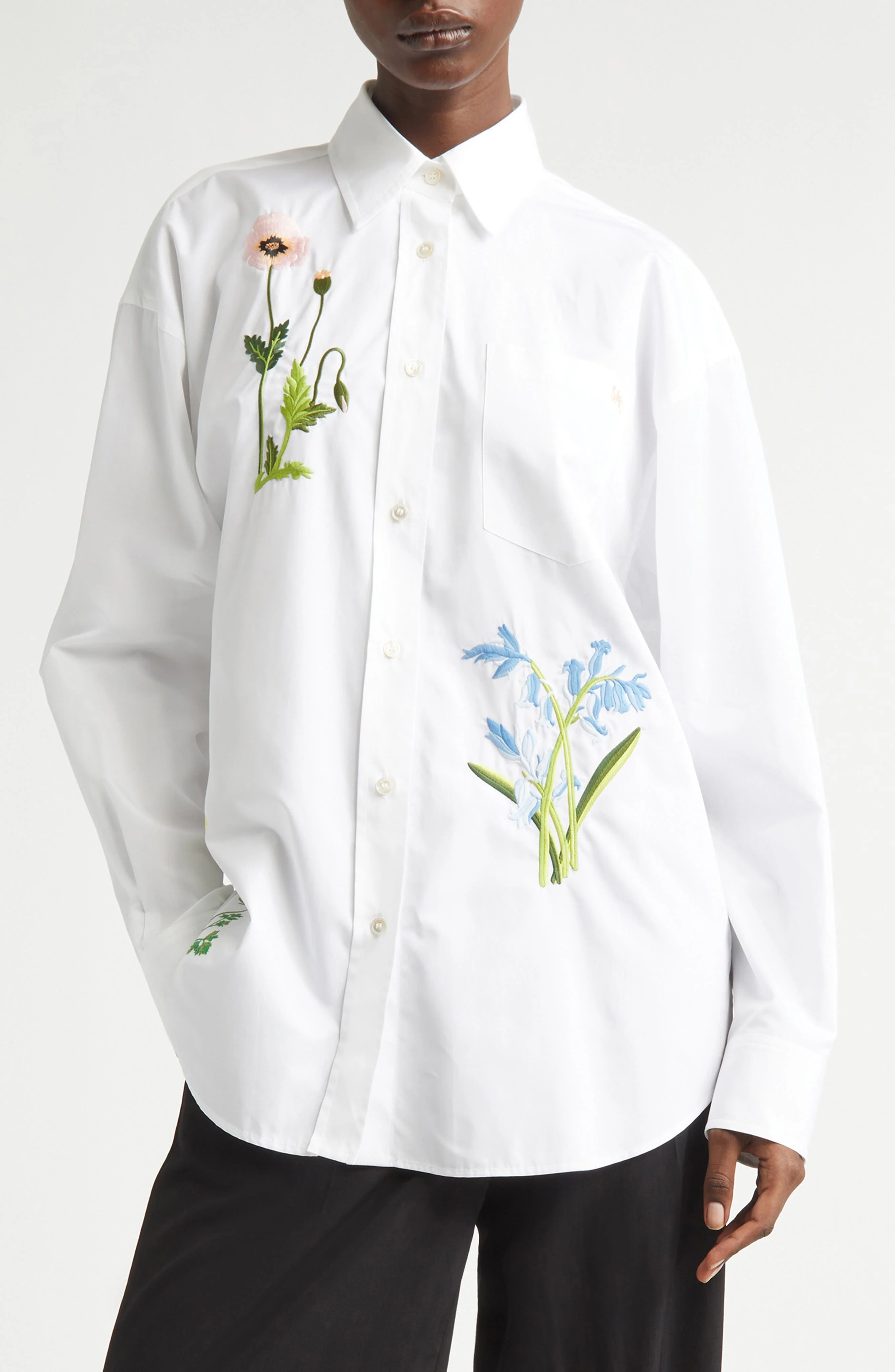 Stella McCartney Floral Embroidered Cotton Oxford Button-Up Shirt in Pure White at Nordstrom