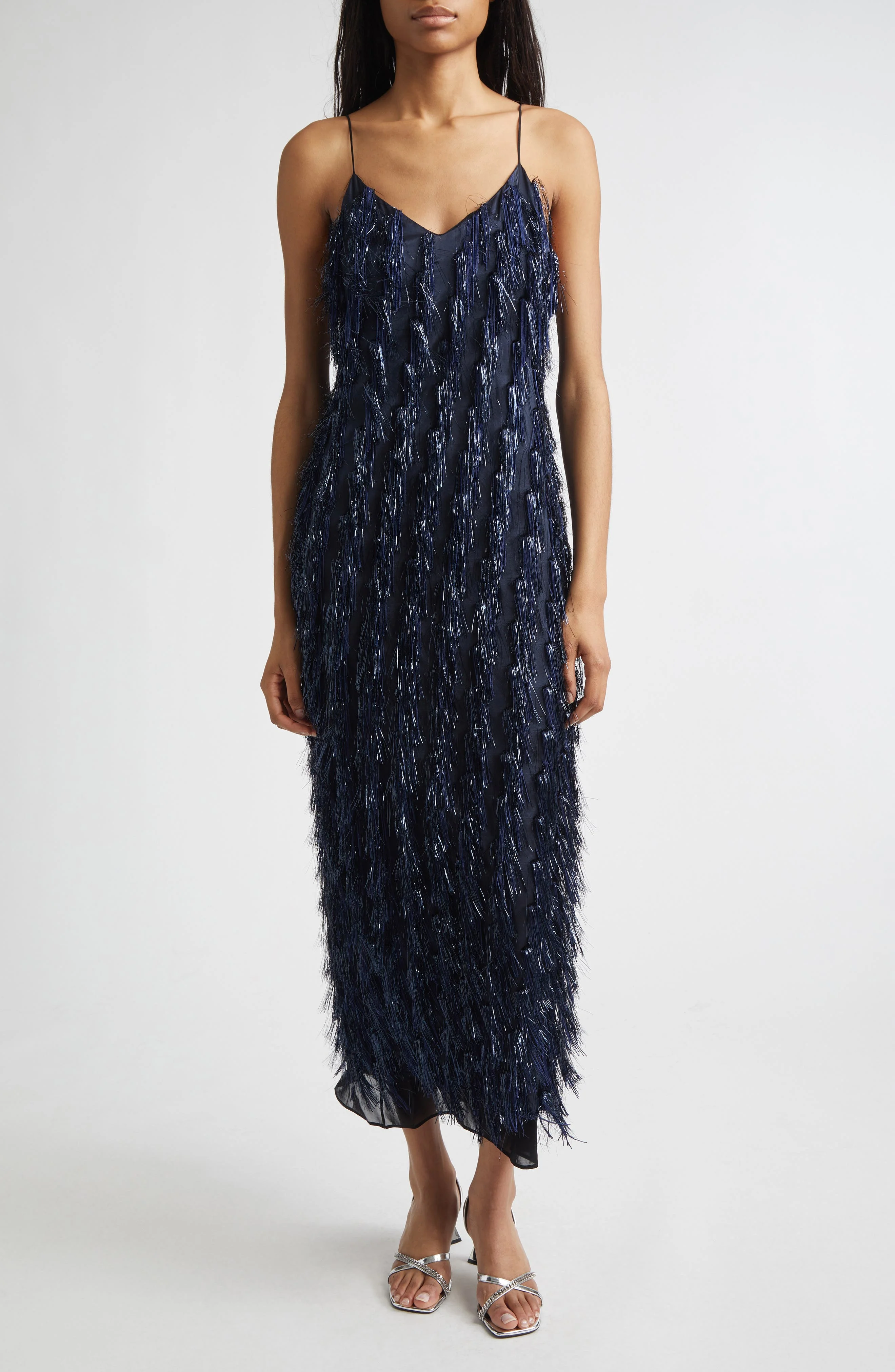 Stella McCartney Metallic Tinsel Satin Slipdress in Navy at Nordstrom