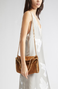 Stella McCartney Mini Falabella Faux Suede Crossbody Bag in Brandy at Nordstrom