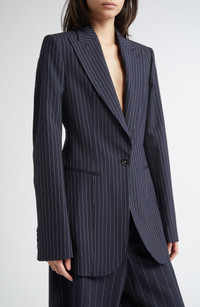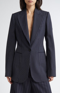 Stella McCartney Pinstripe Wool One-Button Blazer in Ink at Nordstrom