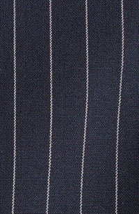Impeccably tailored from fine wool, this one-button blazer features crisp pinstripes that further elongate the extended silhouette. One-button closure Peaked lapels Four-button cuffs Chest welt pocket; front welt pockets Lined 100% wool Dry clean Imported Designer Clothing